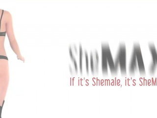 Horny shemale poses in dress and panties and jerks ladystick
