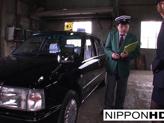 Sexy Japanese driver gives her boss a blowjob