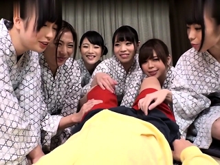 Hot Asian gives blowjob in group sex orgy