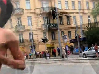 Naked Czech girl was walking through the city center