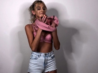 Smalltit teen fingers herself while stuffed in tight muff