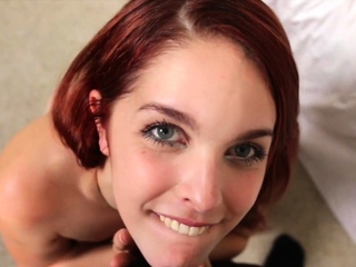 Redhead teen POV sucks cock n rubs cunt