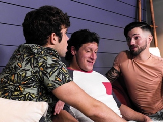 Two gay friends fuck their straight buddy