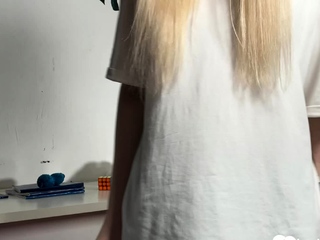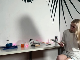 Blonde teen cannot stop drilling herself on camera