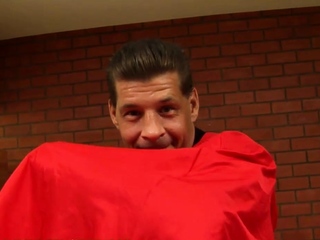 Redhead ladyboy in black stockings enjoys a blowjob from a