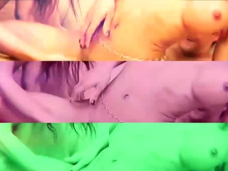Dark-haired ladyboy in tight dress enjoys solo masturbation