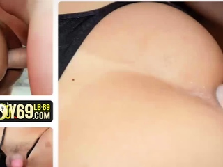 Small boobs ladyboy in blue bikini teases with her small
