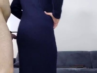 A pair of CFNM femdom busty brunettes sucking cock