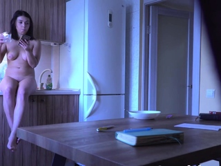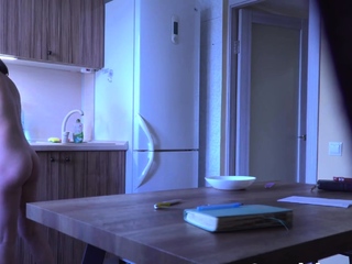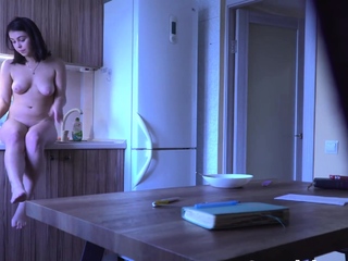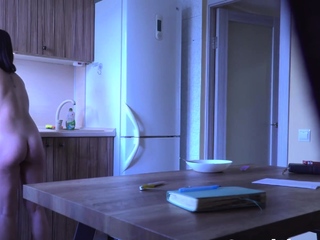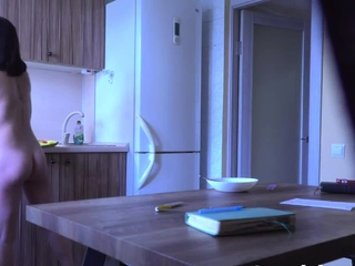 My petite ex doing the dishes naked in the kitchen
