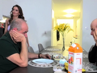 Sweet teen pussy hard double penetrated by 2 grandpas
