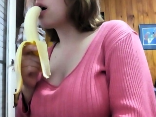 Argentine tits, sucking the banana
