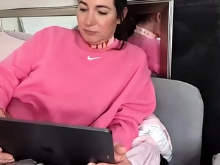 Big tit shemale jerks her long cock