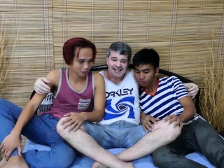 Asian skinny twinks fucked in DILF 3some