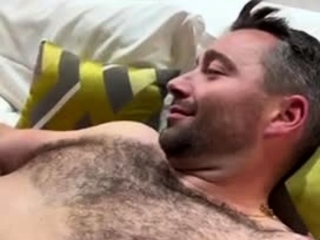 In a kitchen a sexy brunette playing with her big boobs