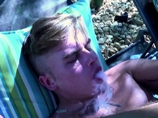 Alex Greene Fucks His Sexy Pal While Smoking By The Pool