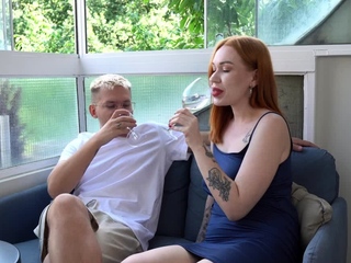 Pretty redhead plays with herself and rides
