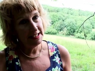 British blonde granny Rosemary plays with her pussy outdoor