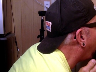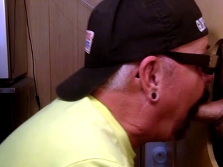 Gloryhole grandpa gives BJ to random guy