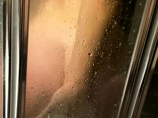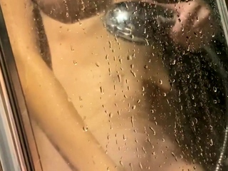Ebony girl showers her big ass amp masturbating