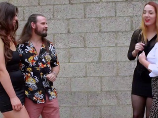 Cockhungry CFNM babes giving blowjob