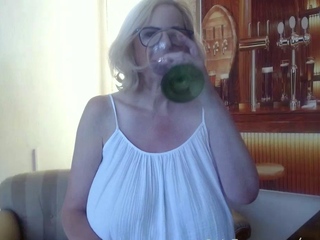 Big Boobed Blonde Masturbates With A Dildo In The Bathroom