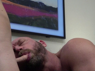 Beefy daddy gets ass devoured by twink