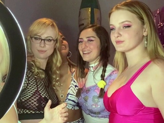 Blonde and brunette lesbians stripping and making out