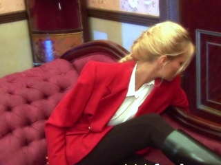 Horny ash-blonde stunner revels in creampie threeway delight