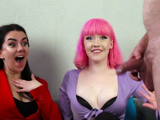Nympho voyeuristic duo tempting guy