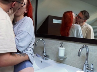 Drilling a horny redhead roommate in the shower