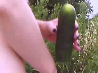 Outdoor anal masturbation with cucumber