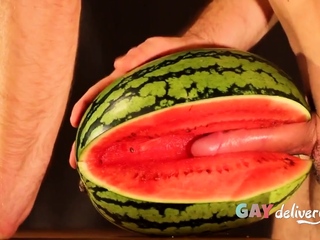 Muscular Stud Fucks and Cums on Watermelon